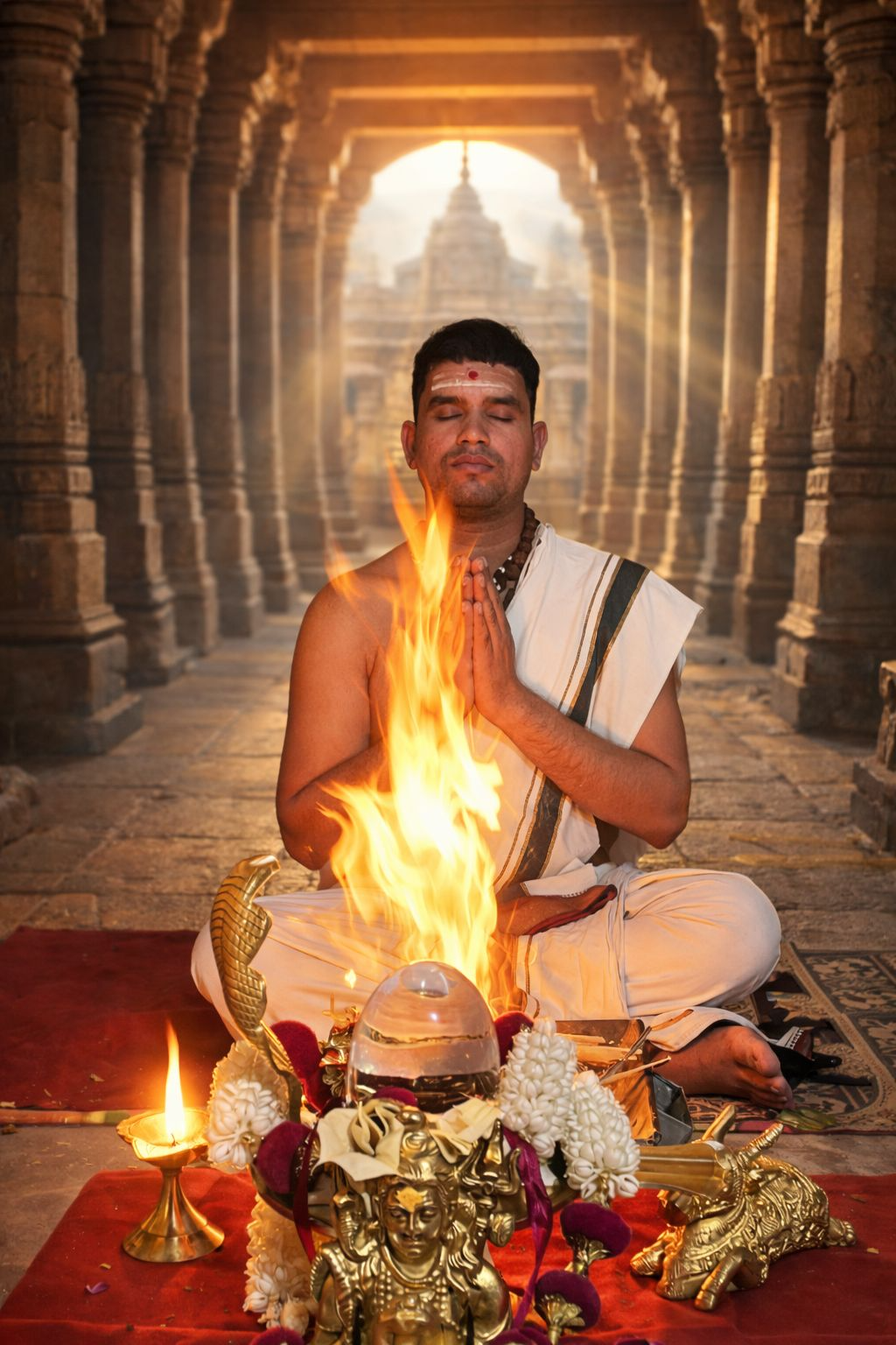 Traditionally trained from early childhood in Vedic ritual science, Sanskrit chanting and ceremonial practice.